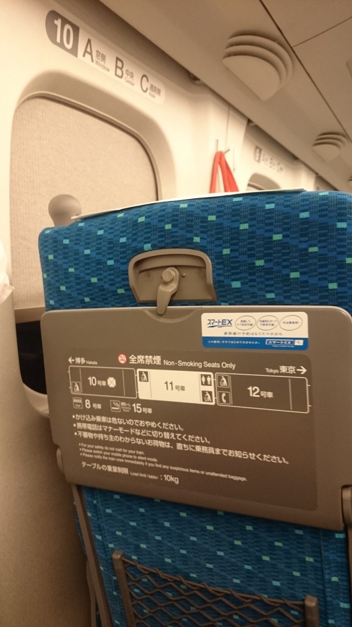旦那くんの実家・山口帰省&福岡一泊の際に利用しました。のぞみ13号で、土曜日に新大阪駅から徳山駅まで、日曜日に広島駅から新大阪駅まで乗車しました。徳山駅停車が少ないので、最近はいつものぞみ13号を利用しています。のぞみはコンセントが利用できてうれしいですね。また機会があったら利用したいと思います。