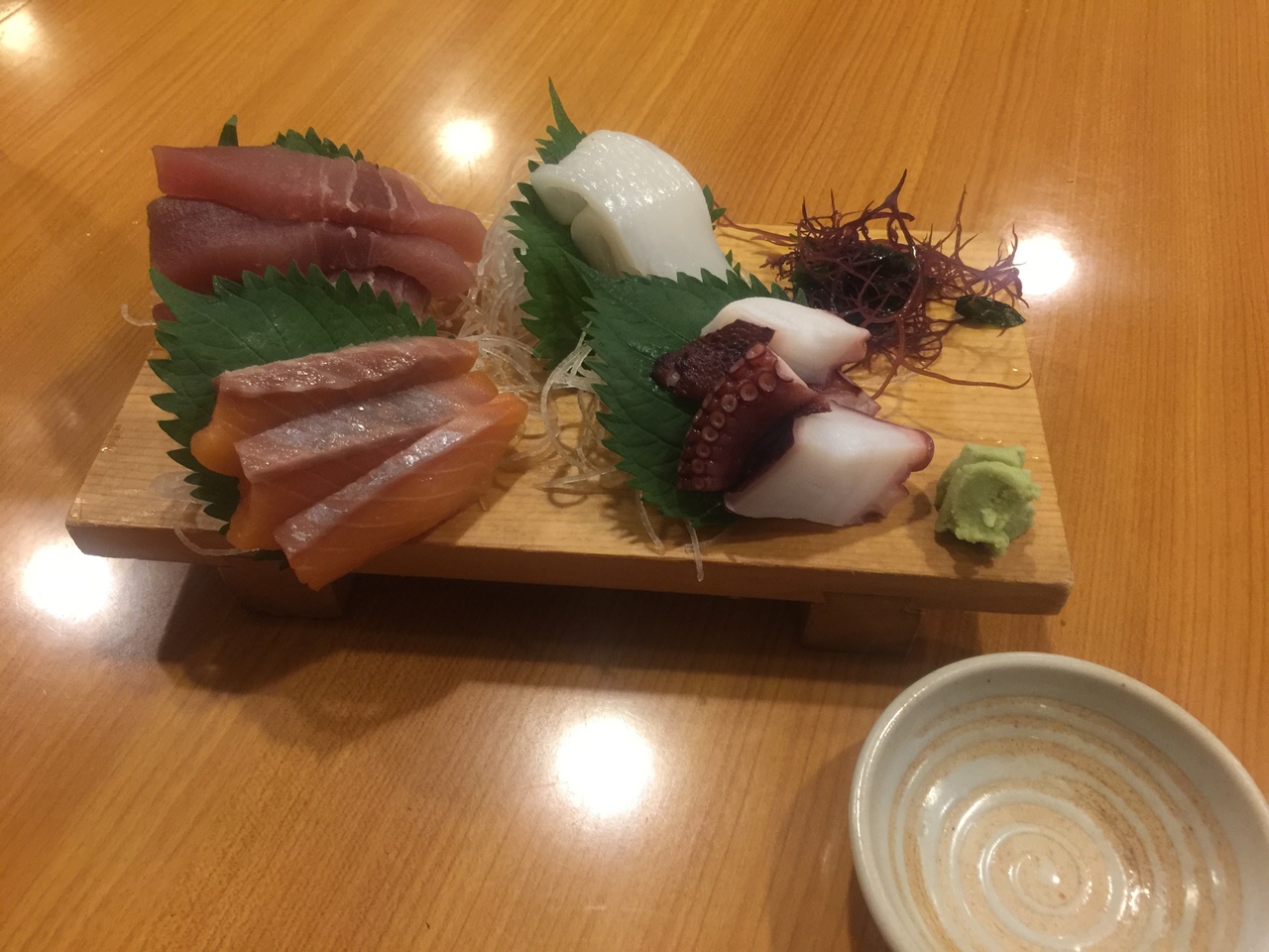 刺身盛合せと秋刀魚塩焼きをビールと日本酒でいただきました。リーズナブルでイイ(^ ^)