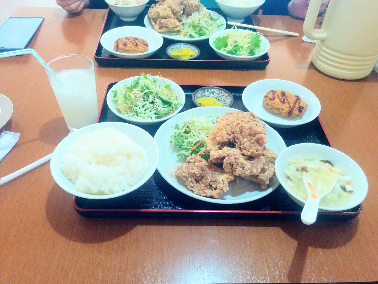 今回は、唐揚げランチを注文しましたが山盛り唐揚げにかぼちゃコロッケ、サラダ、漬物、スープ、ドリンクが付いてました。ご飯は、お替り自由です。