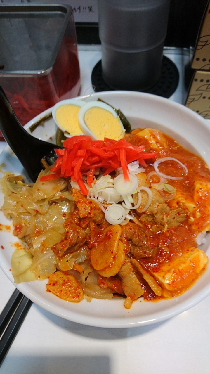平日の夜に、新宿店に晩飯を食べに行きました。お腹が減っていたので、蒙古丼と蒙古タンメンを頂きました。