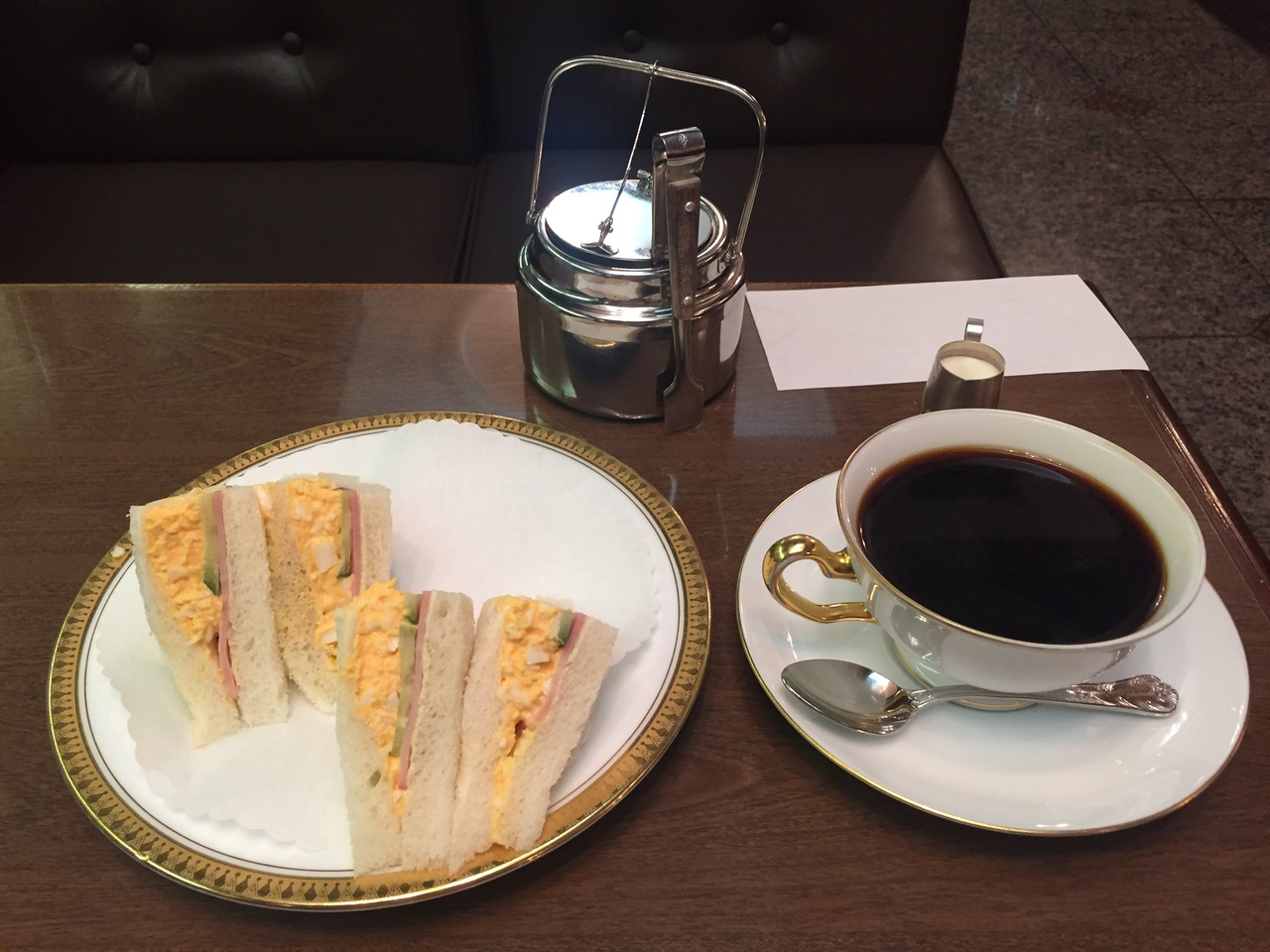 入口付近の席に固めて客を通していたが たまたま奥の空いている席に座ることができ 本店ならではの ゆったりした空間で老舗喫茶モーニングを楽しめた。
