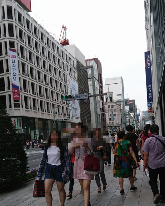 銀座のメイン通りで「GINZA SIX」「銀座三越」「銀座和光」などなど、たくさんの店舗がありウィンドウショッピングするだけでも楽しめます。平日でも買い物客や外国人旅行者で賑わっていました。土日祭日は歩行者天国になります。