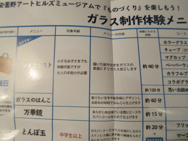 長野の安曇野にある観光地です。エミール・ガレの作品が並んでる美術館とか、ガラス工芸の体験ができるソーンとか、ガラス製品が売っているお店とかが入っています。イタリアンのレストランもありましたので、いろいろな利用ができる場所です。とくにお店には季節ごとの楽しい商品がいっぱいでテンションが上がりました。ガラスのお庭もおすすめ。