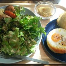 デリとサラダ、パン2個、ドリンクをつけて930円。