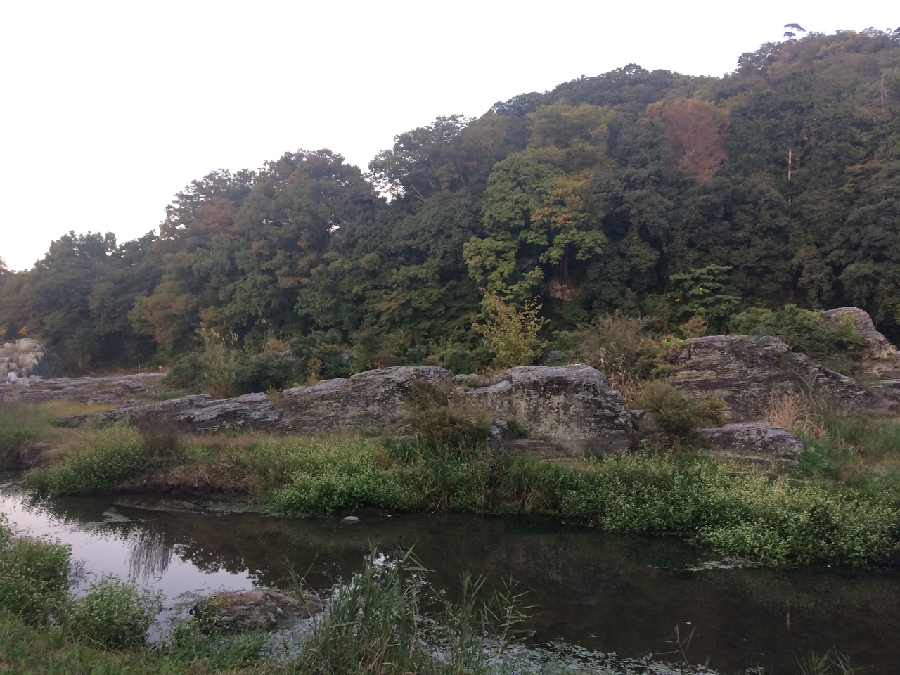 秩父にある県立長瀞玉淀自然公園はの代表的な名所は長瀞の岩畳で、上から見ると畳のようにみえることから岩畳と呼ばれており、日没が近いというのに多くの観光客で賑わっていました。今回はライン下りなどを利用していないため詳細は分かりませんが、荒川沿いに珍しい岩の雄大な景観が続いているそうです。河岸の上から眺めると、川の流れも緩やかだったり早かったりと変化が激しかったです。