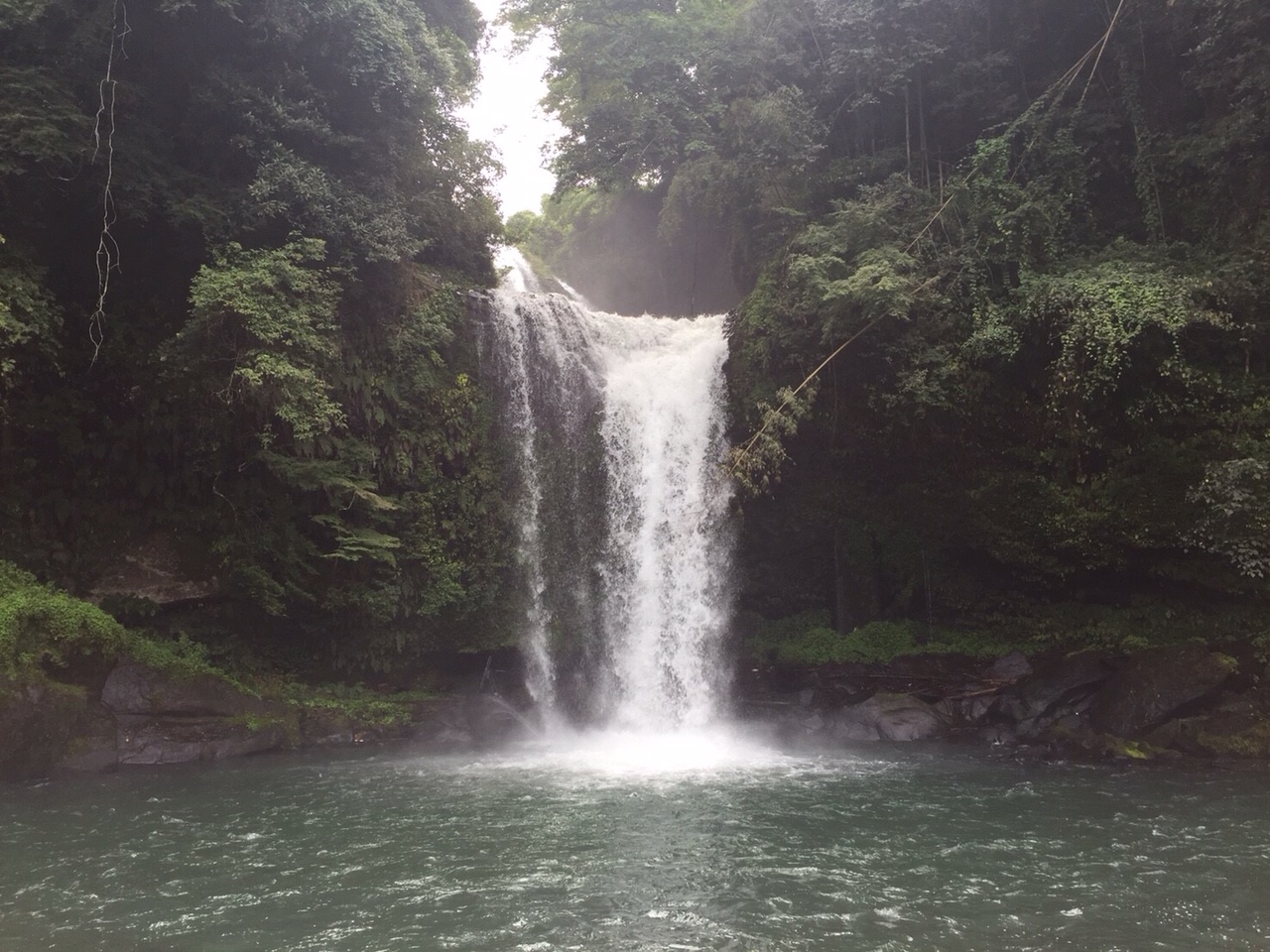 湯布院温泉から日田市の方へ国道を走っていると、道の駅を発見して入ってみたところ「滝はこちら」といった看板が・・・。それに従って進んでみると、20~30メートルもありそうなとても大きく、綺麗な滝が姿を現します。離れて見るだけでなく階段を降りれば、かなり低いところまで降りていけますので夏などは涼しそうだと思いました。