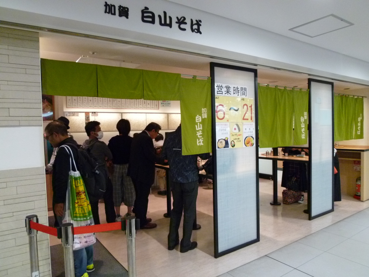金沢駅近くにある立食いそば屋さん。営業時間は6時から21時。日曜日の朝食で入りました。口コミでみた白エビかき揚げそば570円と生卵を注文。そばは柔らかいですが、汁がしおっけがあり、好きな味です。かき揚げはパリパリでエビの風味もありそばにマッチして美味しいです。金沢に行った際の定番になりそうです。