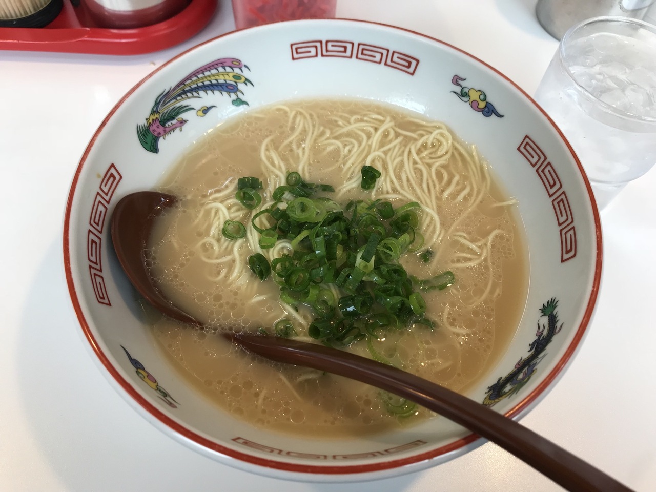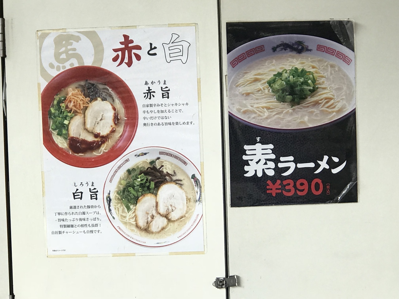 食券を買い店内に入るとグツグツとスープを炊く音がします。街中のラーメン屋さんと変わらないメニューの中で、素ラーメンと言う麺とスープの味だけ楽しむメニューがある(ネギのみトッピングされている)。