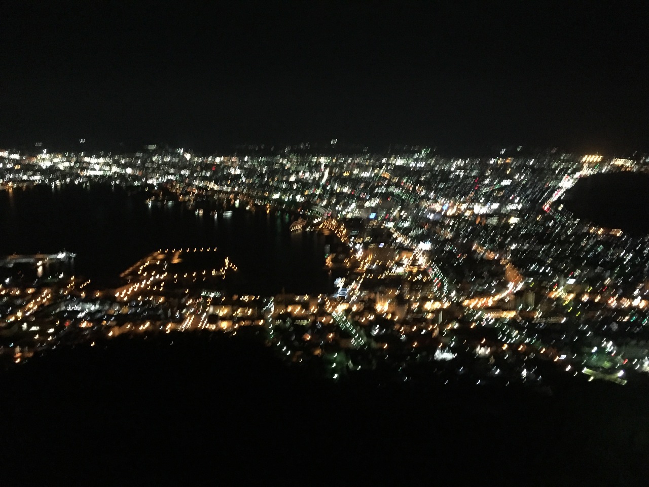 10月初旬の夜に行きました。函館山からの眺めは絶景で素晴らしいです。しかしながら明日から台風のせいか、外国人観光客と修学旅行生で、展望台は大混雑でした。良いポジションを確保するのは結構時間かかりました。修学旅行生の引率の先生が大変そうでした。