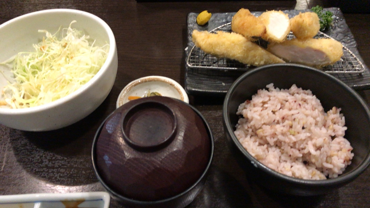 揚げたてのささみカツが食べられます。キャベツはおかわり自由です。玄米か白米か選ぶことができるので、玄米をお願いしました。後から来た人が玄米を頼んだら売り切れていたので、玄米の方が人気みたい。ささみカツが柔らかくてすごく美味しいです。平日ランチタイムに訪問しましたが、やっぱり混んでました。