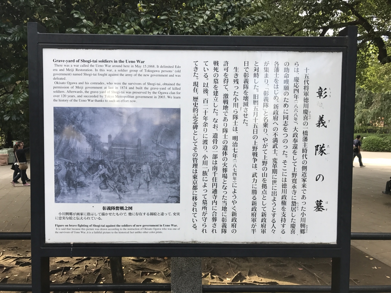 会津の土地だと、戊申で亡くなった方々のお墓に現代でも真新しい献花がされているところが多いんですが、上野のお墓はお花などはなく殺風景です。土地柄が比較できますね。