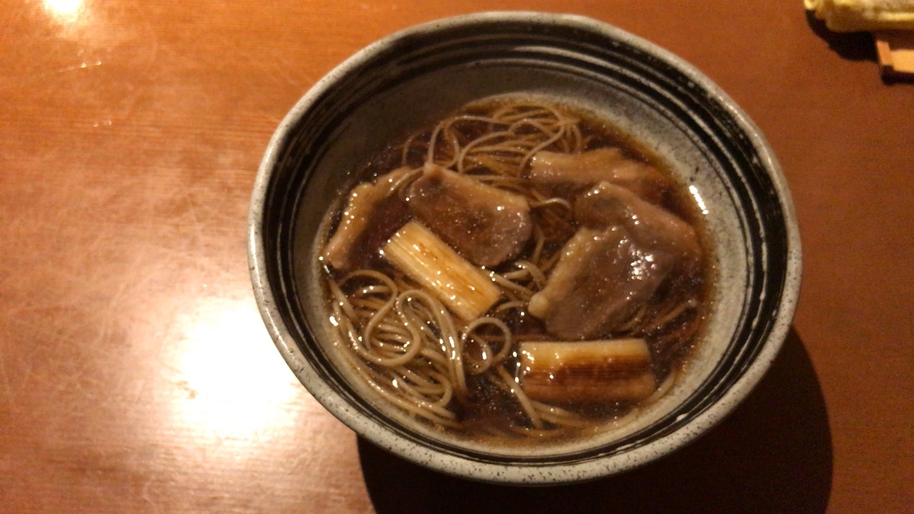 鴨そばを食べ
