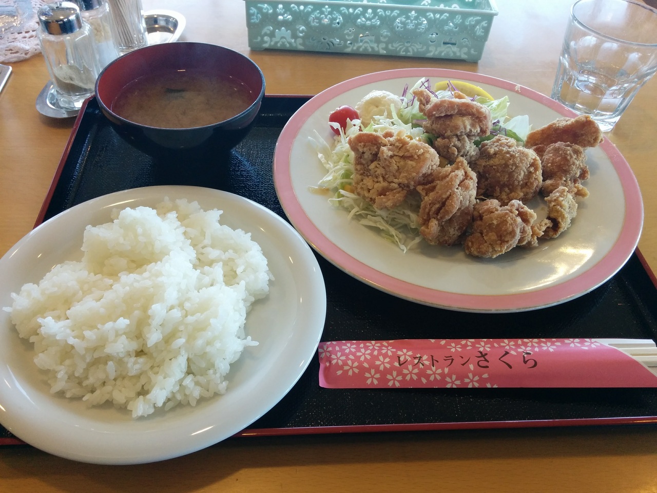 それなのでレストランからの眺めは、抜群です。(平成30年は、工事の為、幕を張ってます。)この日は、唐揚げ定食650円を注文しました。カリカリの唐揚げが美味しく眺めも良くオススメのスポットです。