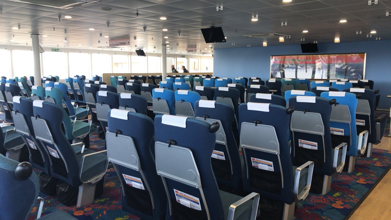 車ごと船に乗りました。移動中はもちろん、船内を自由に歩きまわることができます。船内は小奇麗で椅子は結構快適。売店もあって、名物の佐渡カレーと佐渡牛乳を買いました。外に出ることもでき、館内をウロウロしている間に、あっという間に佐渡についてしまいました。