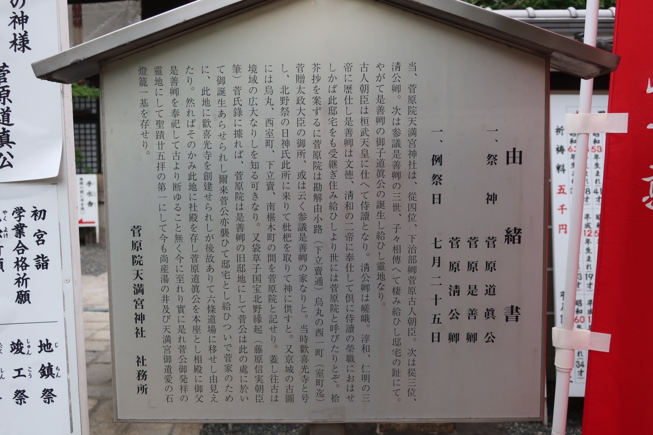 烏丸下立売交差点を少し下った所に菅原院天満宮神社があります。この地は菅原院(菅原家の邸宅)があった所であり、菅原道真もこの地で生まれたとされ、道真生誕地として知られる神社です。境内には御産湯の井があるほか、勿論、牛の像も置かれています。京都で道真といえば北野天満宮だけだと思っていましたが、生誕地の神社があるとは知りませんでした。