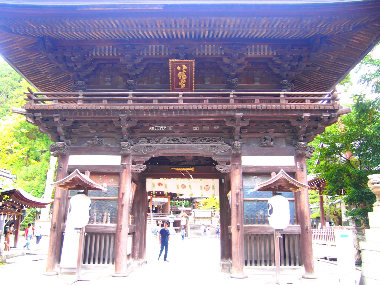 京都府八幡市の石清水八幡宮の神霊を勧請、と聞けばもう少し襟を正すべきであったと反省もするが、境内の大半が駐車場と飲食店となっており、日牟禮八幡宮自体はなんだか付け足しのようになってしまっている。皆さんの目的はスイーツ店。