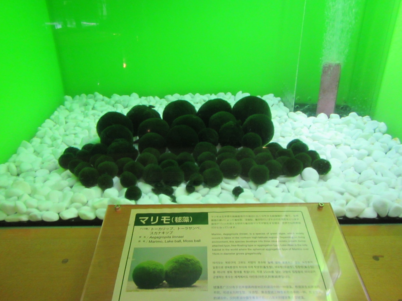 マリモや魚のイトウなど、実際の生き物、はく製の展示があるほか、展示室には床一面に阿寒湖周辺の航空写真があって、湖周辺の観光スポットのおおよその距離感や様子が分かってよいです。