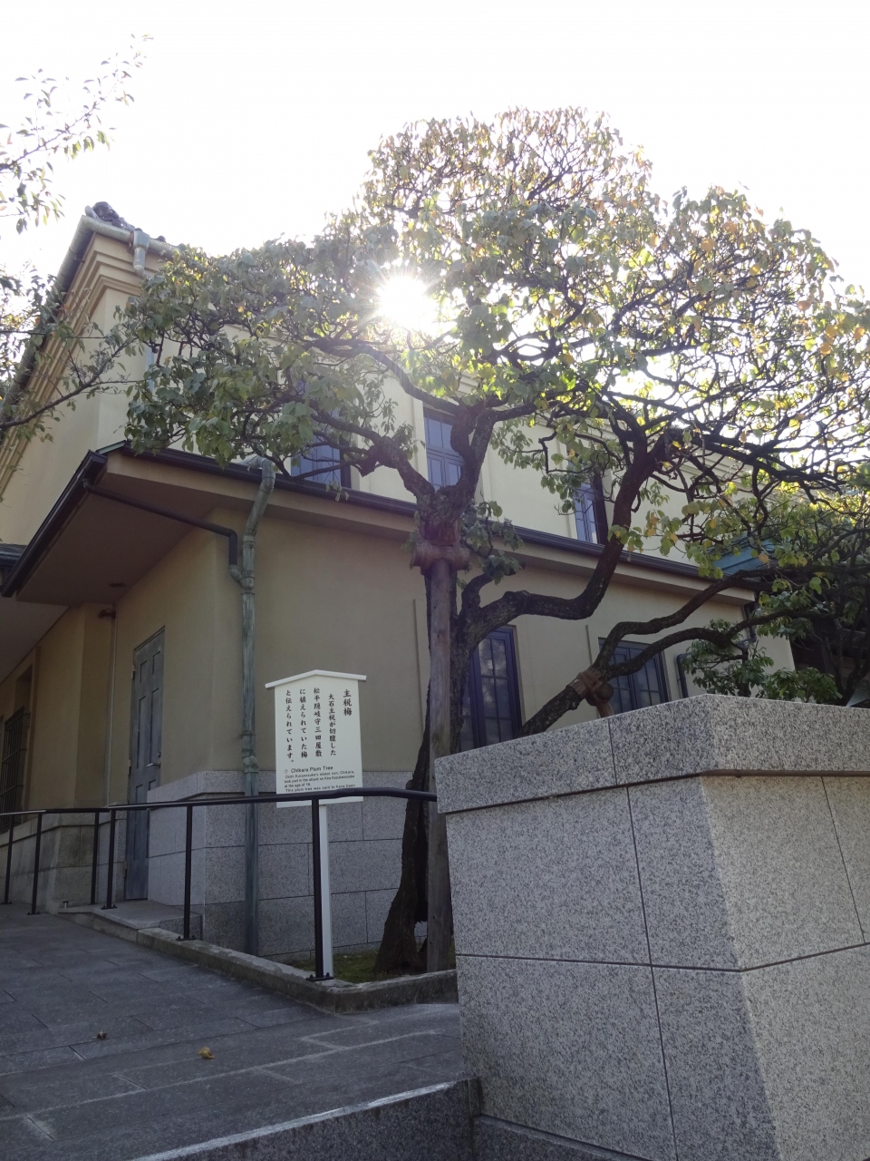 それによると、大石内蔵助が切腹を果たした松平隠岐守の三田屋敷に植えられた梅だということです。