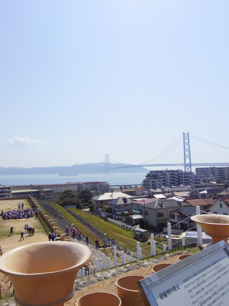 垂水のアウトレットからも見える五色塚古墳。JRや山陽、それに国道二号線に阻まれているので、アウトレットからはちょっと行きにくい場所にあります。でも、それでも、行ったほうがいい場所で、景色はこの写真の通り非常によく、入場は無料。本当にいい場所です。