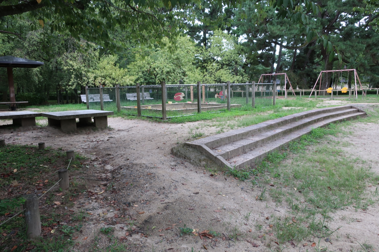 京都御苑の北西部、乾御門から入った左手に進んだ所に児童公園があります。御苑の中にある唯一の児童公園で、広場とは異なり、滑り台、シーソー、ブランコ、砂場、雲梯が設置されている他、休憩用の東屋も完備。御苑内散策で疲れた際の休憩設備にも使えます。しかし、観光地ではありません。