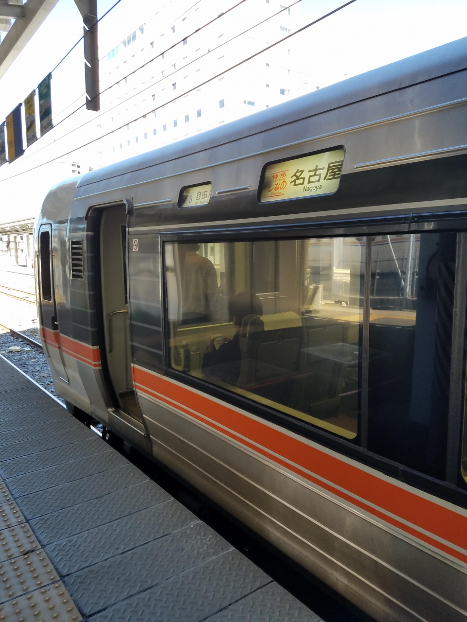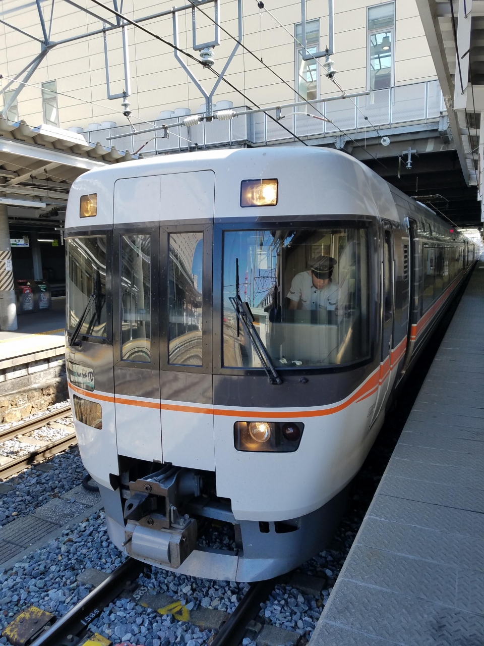 しなのは、名古屋から中央本線、篠ノ井線を経由して長野を結び、西方面から長野入りに重要な特急列車です。山岳エリアを通りカーブが多く振り子式車両のためよく揺れます。長野から松本まで1時間弱の乗車でしたが、山、川の風景を楽しみました。