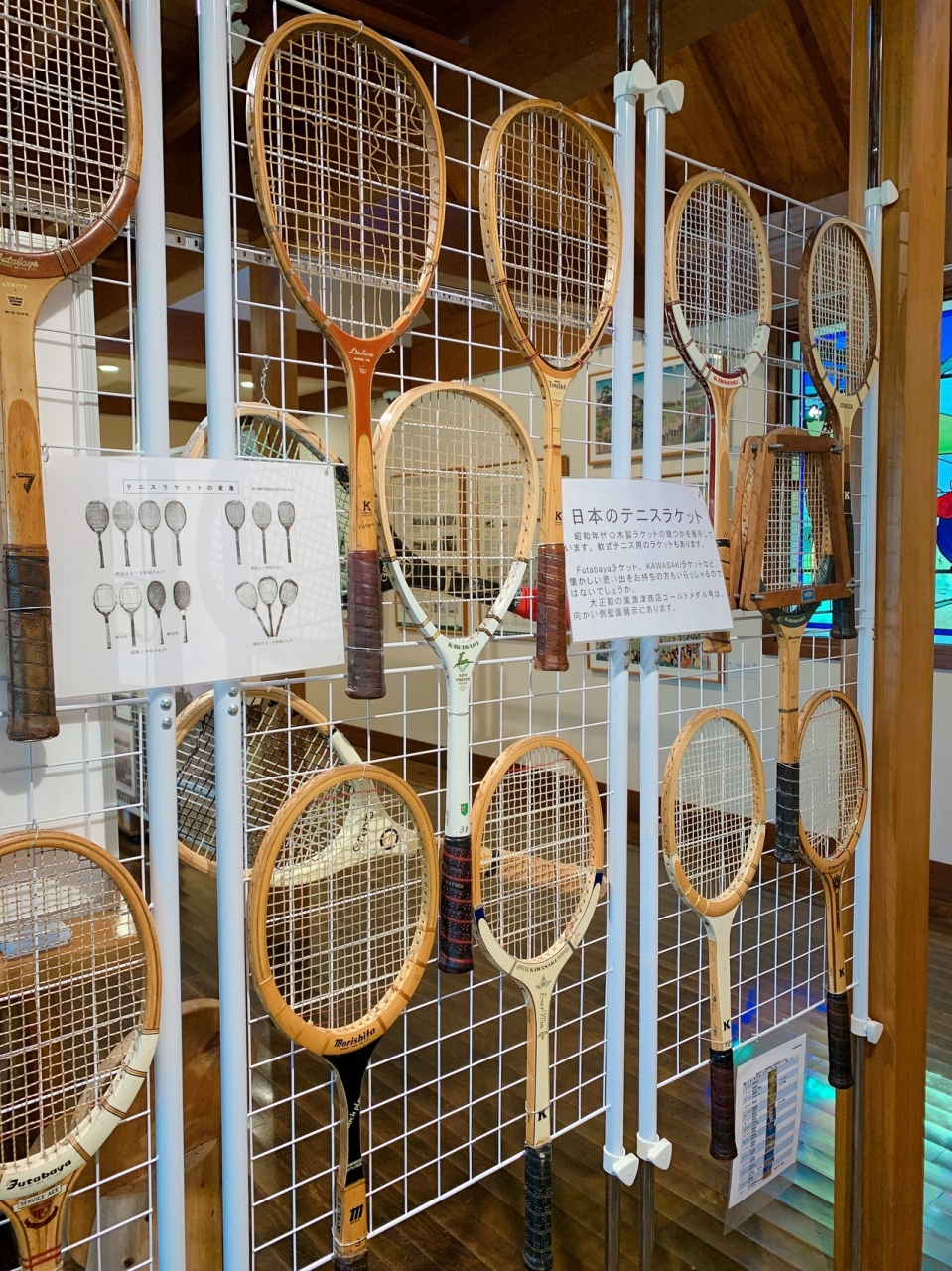 木製のテニスラケットや昔のウエアが展示されているのが興味深かった。テニスをしたことのある人なら一層面白いかもしれない。