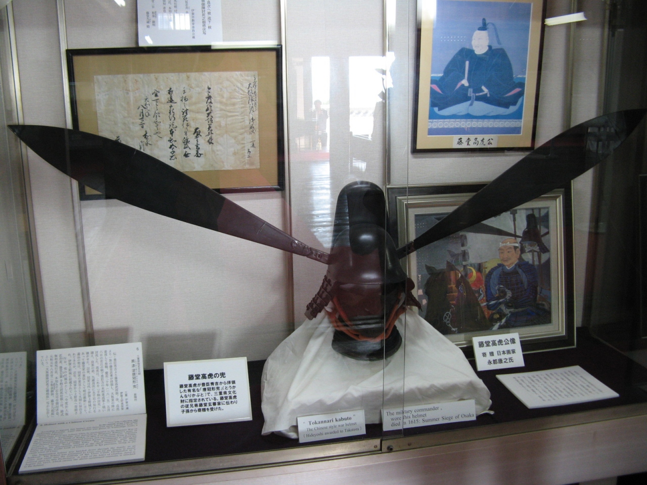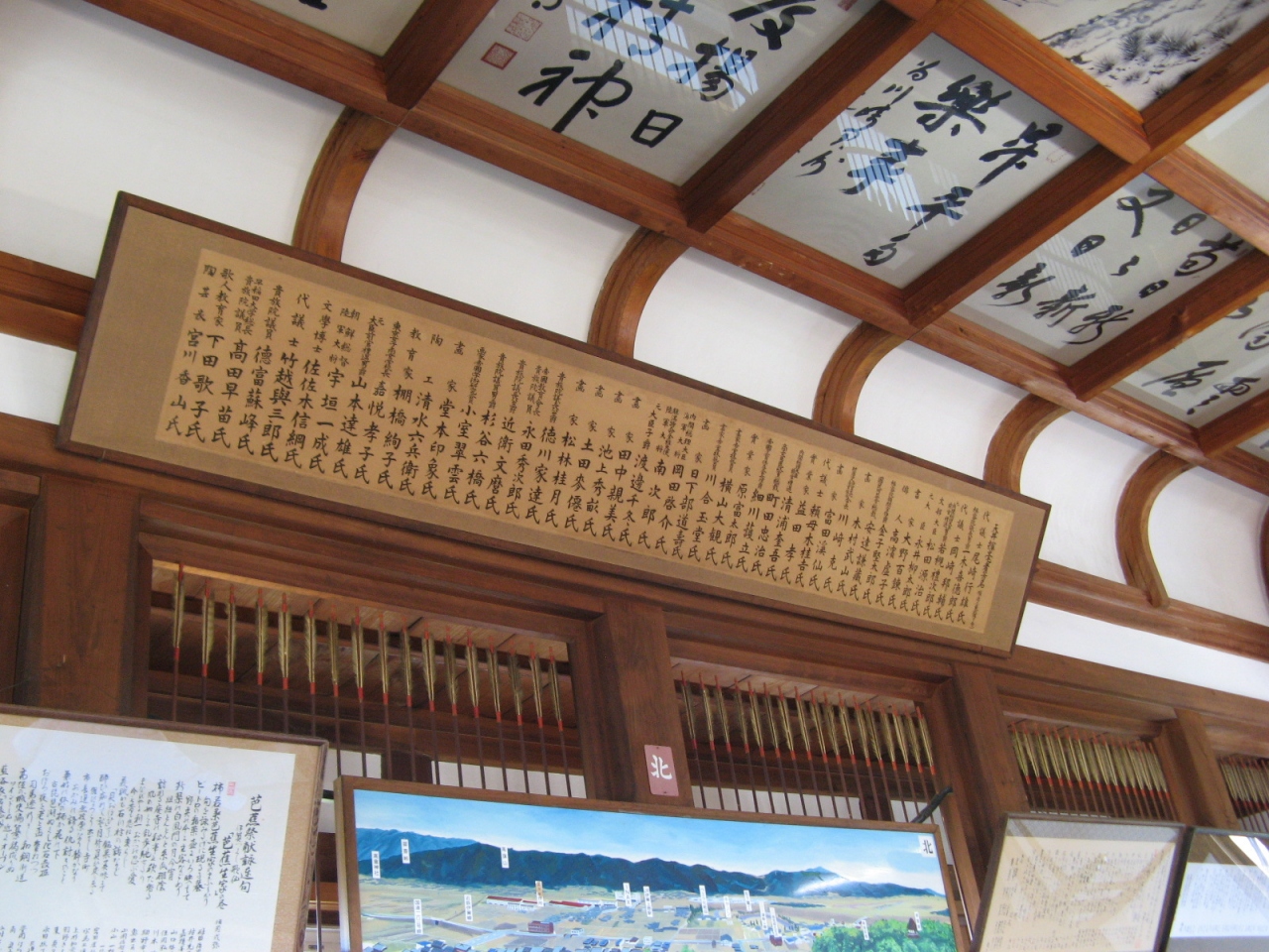 城内には武具・甲冑や藤堂家の遺品が展示されていて有名な高虎の兜は見事なものでした。また、横山大観や近衛文麿、堂本印象など名だたる人の色紙46点が天井絵として飾られているのも見ごたえがありました。