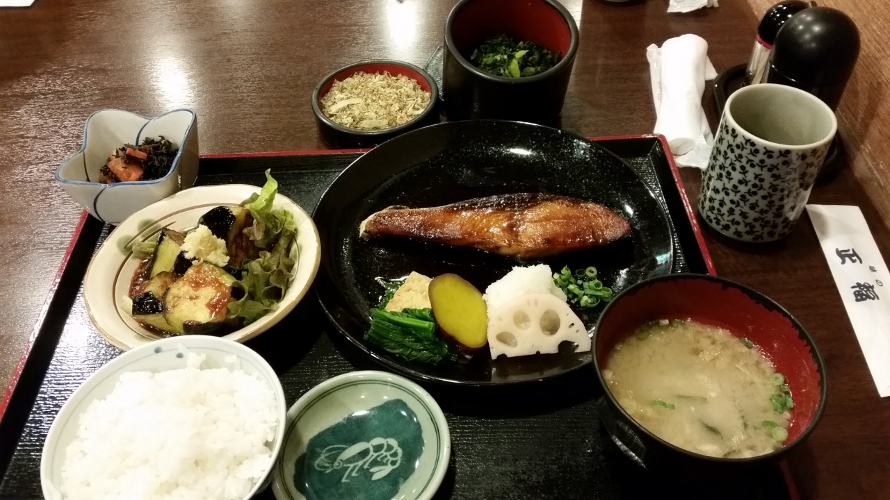 博多在住の、口の肥えた従姉妹のお勧めで、私は初めての訪問です。従姉妹3人で平日13時頃訪問し少し待ちました。私はぶり照り焼き定食1400円、彼女たちは銀たらみりん定食1400円、茄子みそ焼きは400円でシェア。まずお茶が抹茶入りで美味でお代わり。ふりかけも漬物も美味。勿論魚も美味。ビジネスカードは、1回に1個印をくれるそうなので、通おうと思って貰いました。