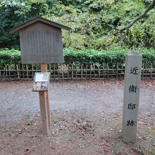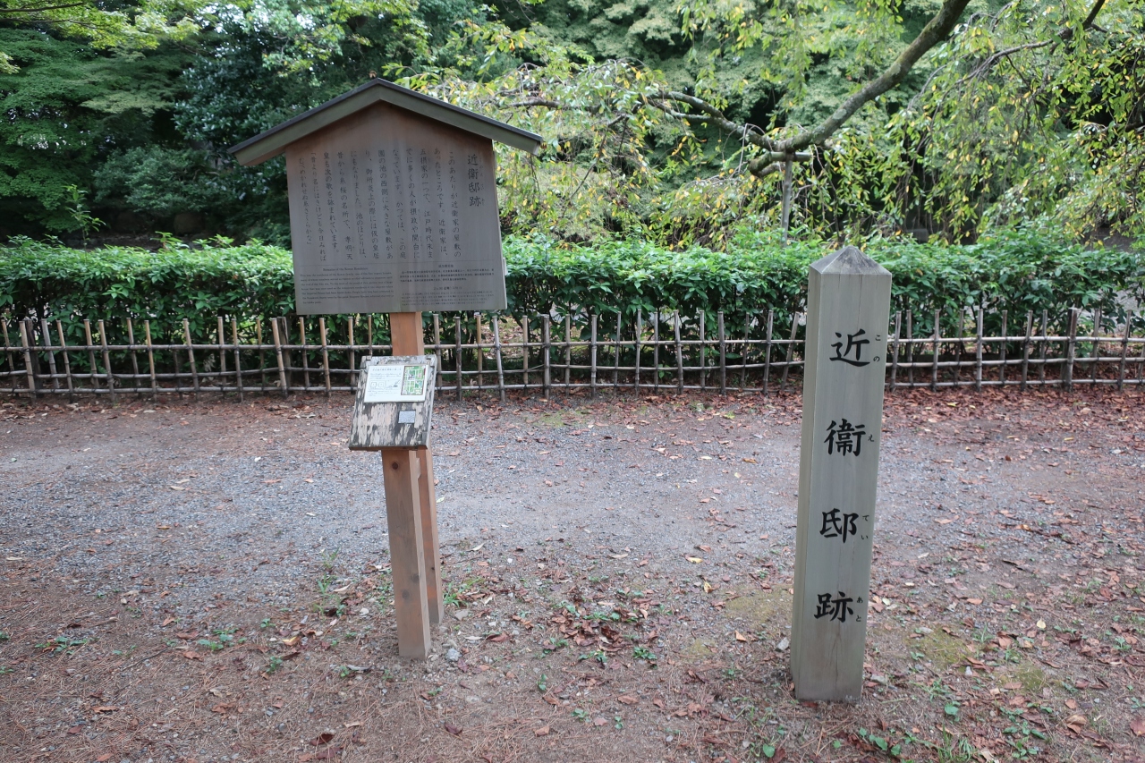 今出川御門から京都御苑に入った右手西側に近衛邸跡があります。五摂家筆頭であった近衛邸跡には近衛池位しか残っていません。九条池の様な池が見られると思っていたのですが、訪れたときは水が抜かれ近衛池は空池になっていました。そのため、九条邸跡の様な見ごたえはありませんでした。
