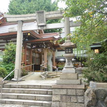 街中にある神社で、境内は広くありませんが、社殿はなかなかりっぱなものでした。社務所もあり、境内はきれいに掃き清められ、とても清々しい空気が漂っていました。神社を一歩でれば、車がたくさん行きかう大通り、でも、神社境内は結界が張られたように、とても静かでした。