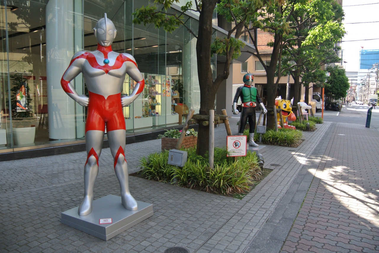一階の敷地内には、仮面ライダー、ウルトラマン、ドラゴンボール、アンパンマン、ドラえもんなど、誰でも知ってるキャラクターのカラフルな像がたくさん建っています。子供の写真撮影にはぴったり。大人でもうれしい人はいっぱいいるでしょう。