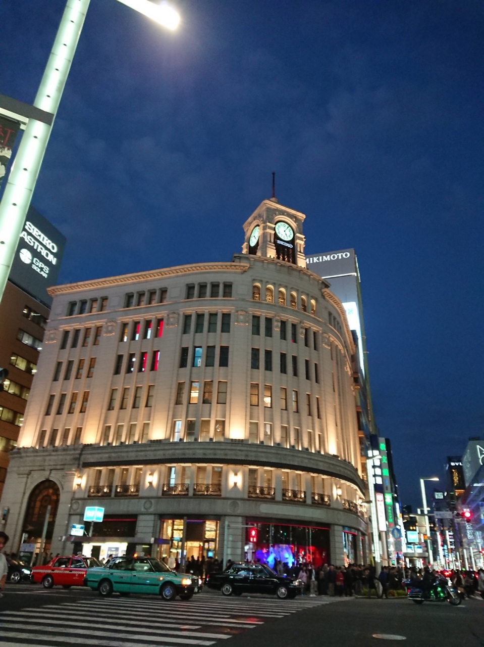 夜の銀座和光はライトアップされていて、とっても雰囲気があります。