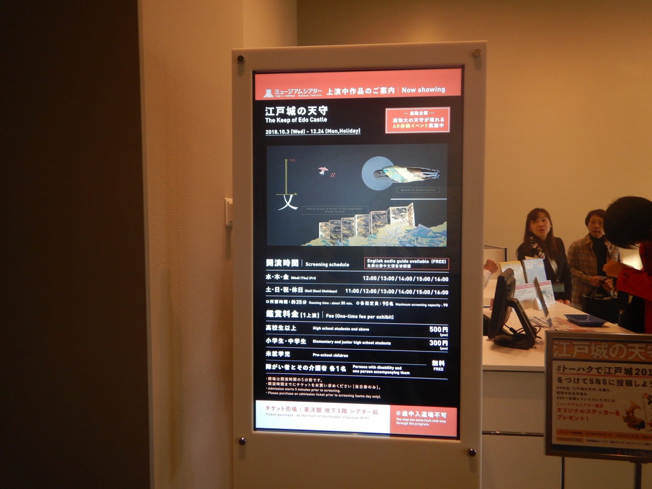 ミュージアムシアターで「江戸城の天守」を上映していたので見たみた。家光の時代の天守をコンピューターで再現したものだ。その後、ミュージアムシアターと同じ地下1階にカンボジアの仏像が展示してあったので見た。ちょうど今月末にカンボジアち行く予定なので、参考になった。