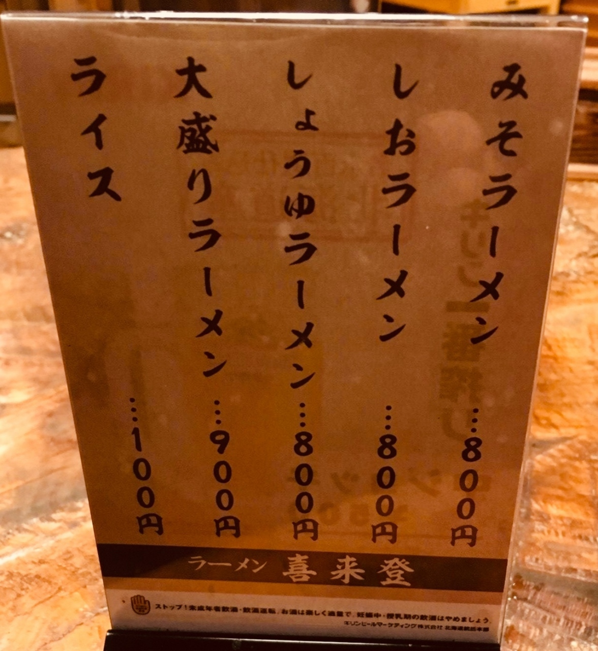 狸小路にある、喜来登に初めて行きました。メニューはシンプルでした。