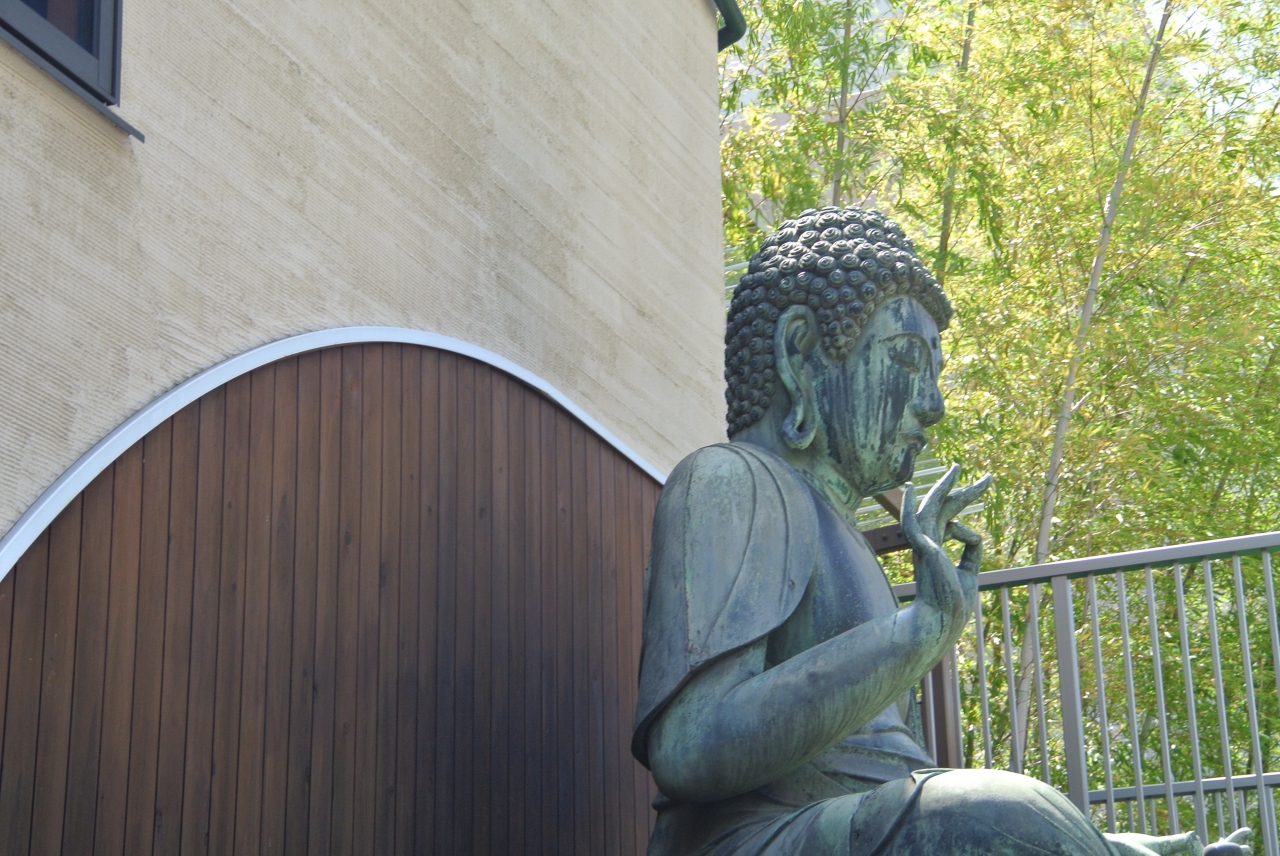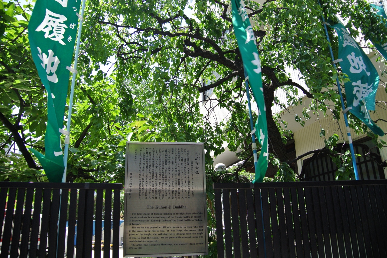 幼稚園の門内にいらっしゃるので、道路側の方から横のお姿を拝見する形になります。大仏といっても、普通大仏と言って思い浮かべる奈良や鎌倉の大仏とは、全然規模が違います。が、江戸時代に大火で亡くなった人を弔うために鋳造されたという東京の歴史を伝える仏様です。