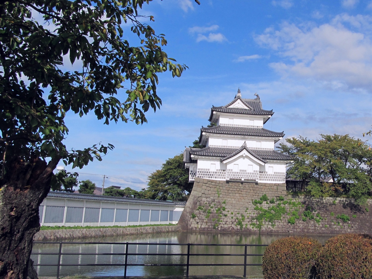 新発田藩の藩庁が置かれていた、別名、浮船城、狐の尾引き城、あやめ城と呼ばれていた。