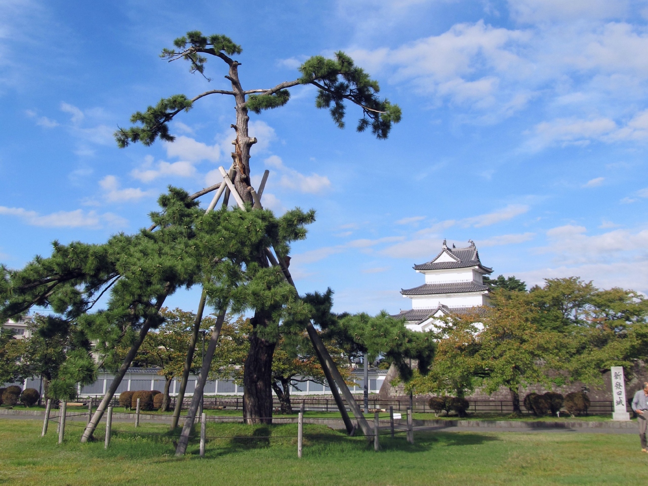城の周辺は新発田城址公園として整備されていて、年輪を刻まれた松が見事です。