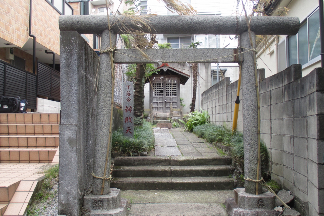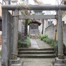 間口が狭いので、注意をしていないと通り過ぎて仕舞いそうです。その道路際には、土台が浮いている様な、石の鳥居があります。昭和3年(1928年)に奉納されたものの様です。そこから続く短い参道の先に小さなお堂があります。なお、創建年代は不詳だそうです。