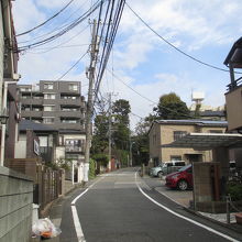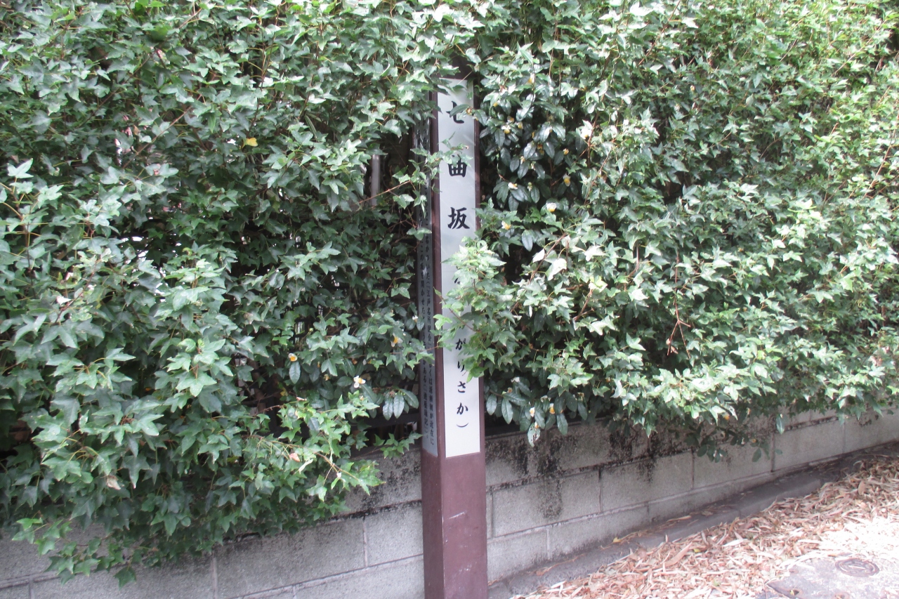 氷川神社近くから丘上へと続く坂道です。趣のある名に惹かれて歩いてみました。坂下の案内板(の説明面)は道路横の植栽に隠れて良く見えません。急坂というほどではありませんが、200mくらい続く坂道ですから、結構しんどかったです。なお、坂上の案内板は比較的見やすく立っていました。