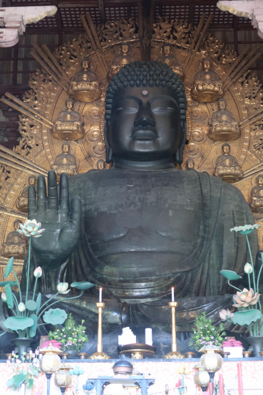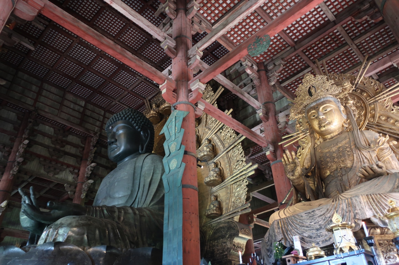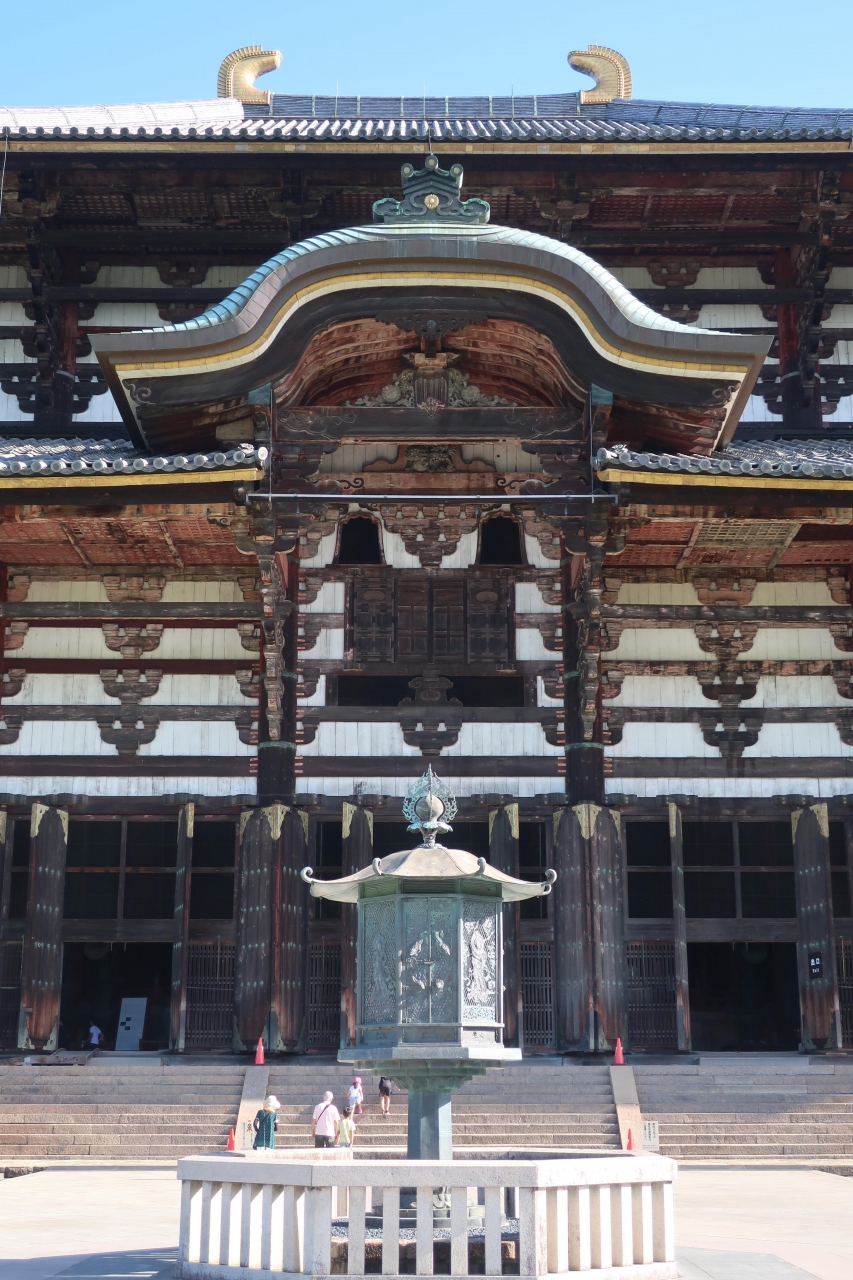 日本一大きな大仏が安置されているのが東大寺金堂(大仏殿) 。これまでも修学旅行などで何回か訪れたことがありますが、何回来ても大仏様の大きさには圧倒されます。それもさることながら、大仏を覆う大仏殿の大きさも凄いの一言。300年前にどうやってこの様な大きな建物を作ったのか感心させてれます。柱の太さも半端なく現代ではこの様な柱となる大木は集まらないでしょう。