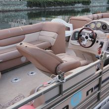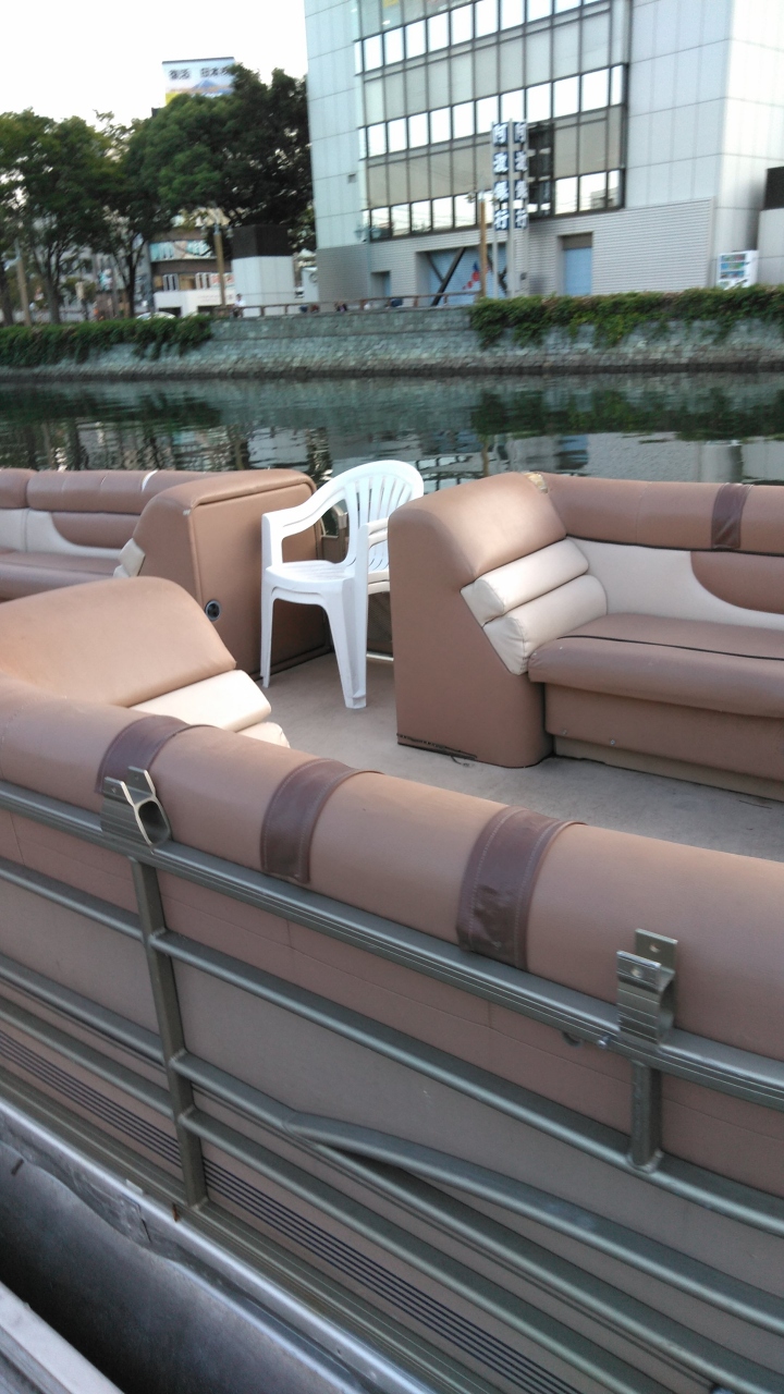 舟の座席はやわらかいソファーになっているため、川を渡りつつ、ゆったりとした遊覧気分を楽しめます。