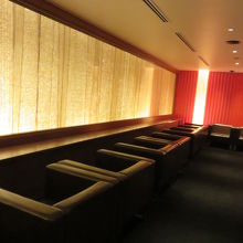 カップルタイプのシートで、リクライニング、足を乗せる場所があったり、ちょっとしたものを置くスペースが設けてあったりと、小さな心遣いがうれしいです