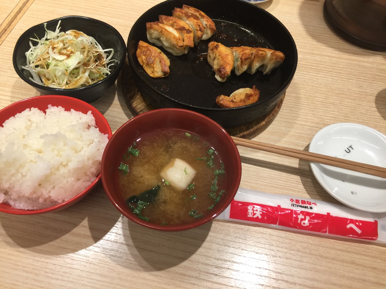 JR小倉駅の構内にある飲食街の中にあるお店。11時ちょっと過ぎに入店するも、バイトが反応しない。水もドンと置くし、バイトがひどい。やっぱり駅ビルはダメだな、と思いつつ、鉄なべランチ660円を発注。店内の写真には鉄なべにびっしり並んだ餃子が写っていたが、出された鉄なべは…。ちょっと落差がひどすぎないか。