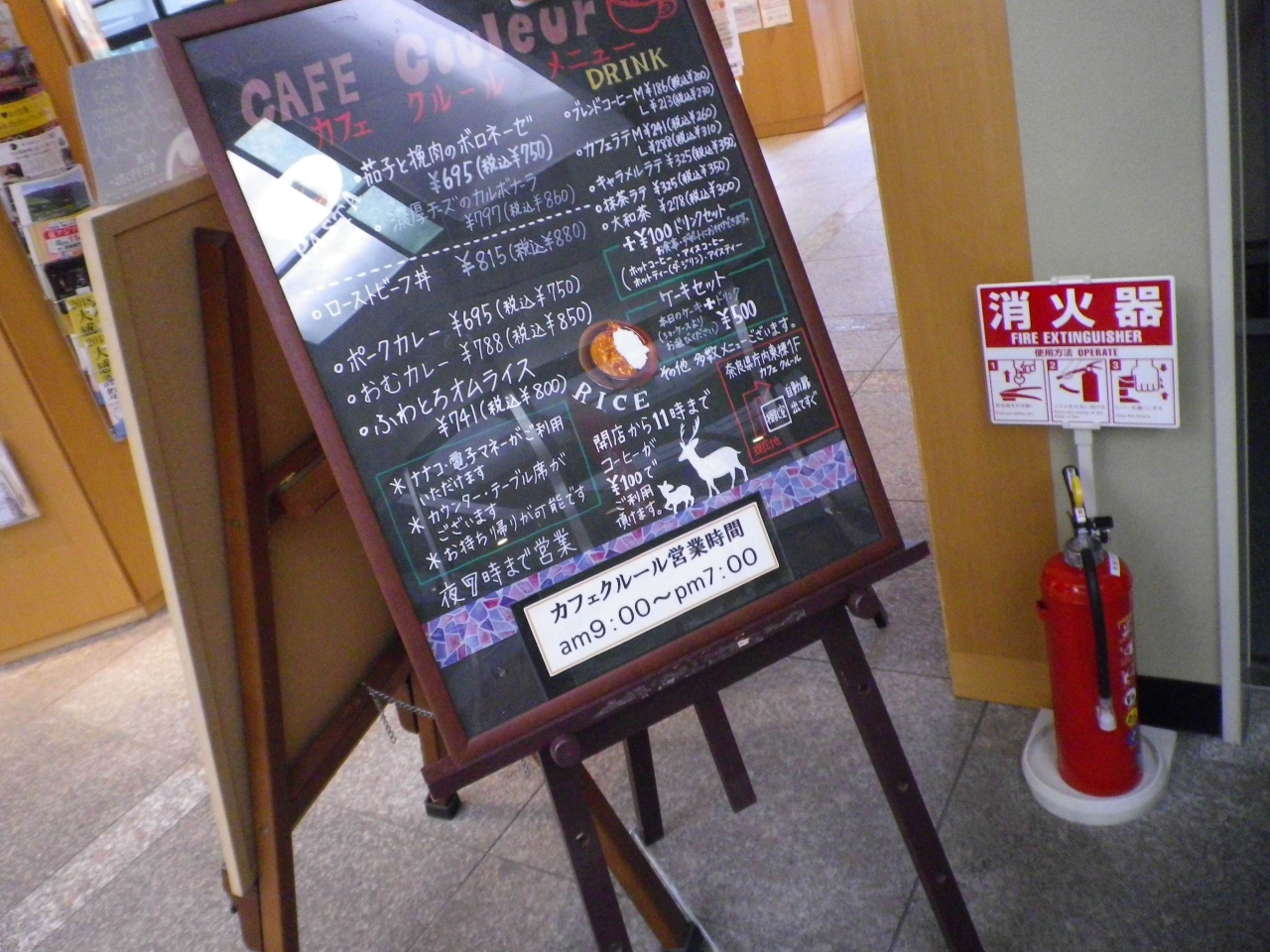 県庁でトイレを借りた後、なにげなくメニューを見ると10時までコーヒーが100円と書かれているのを発見。まあ、向かいのコンビニコーヒーも100円なのだが、トイレの利用料とも思い100円コーヒーを頂きました。