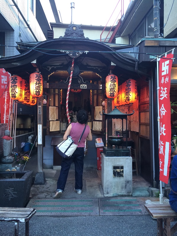 千駄木のよみせ通り商店街にあります。とても小さな建物に祀られているので注意してないと通り過ぎてしまうかも。たまたま参拝されている方がいらっしゃったので気づくことが出来ました。赤い提灯と赤い幟とで雰囲気がありました。地元の方に愛されている地蔵尊で毎月24日には縁日があるそうです。せっかく行かれるならこの日がお勧めです。