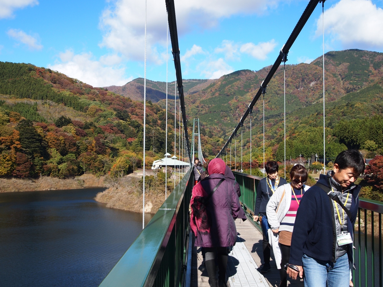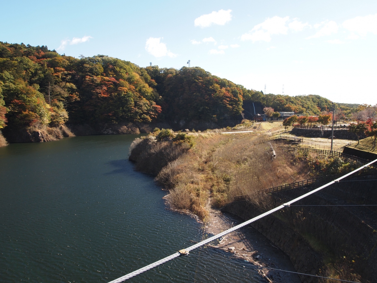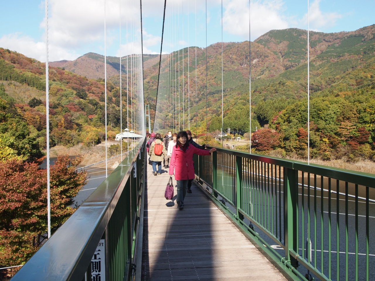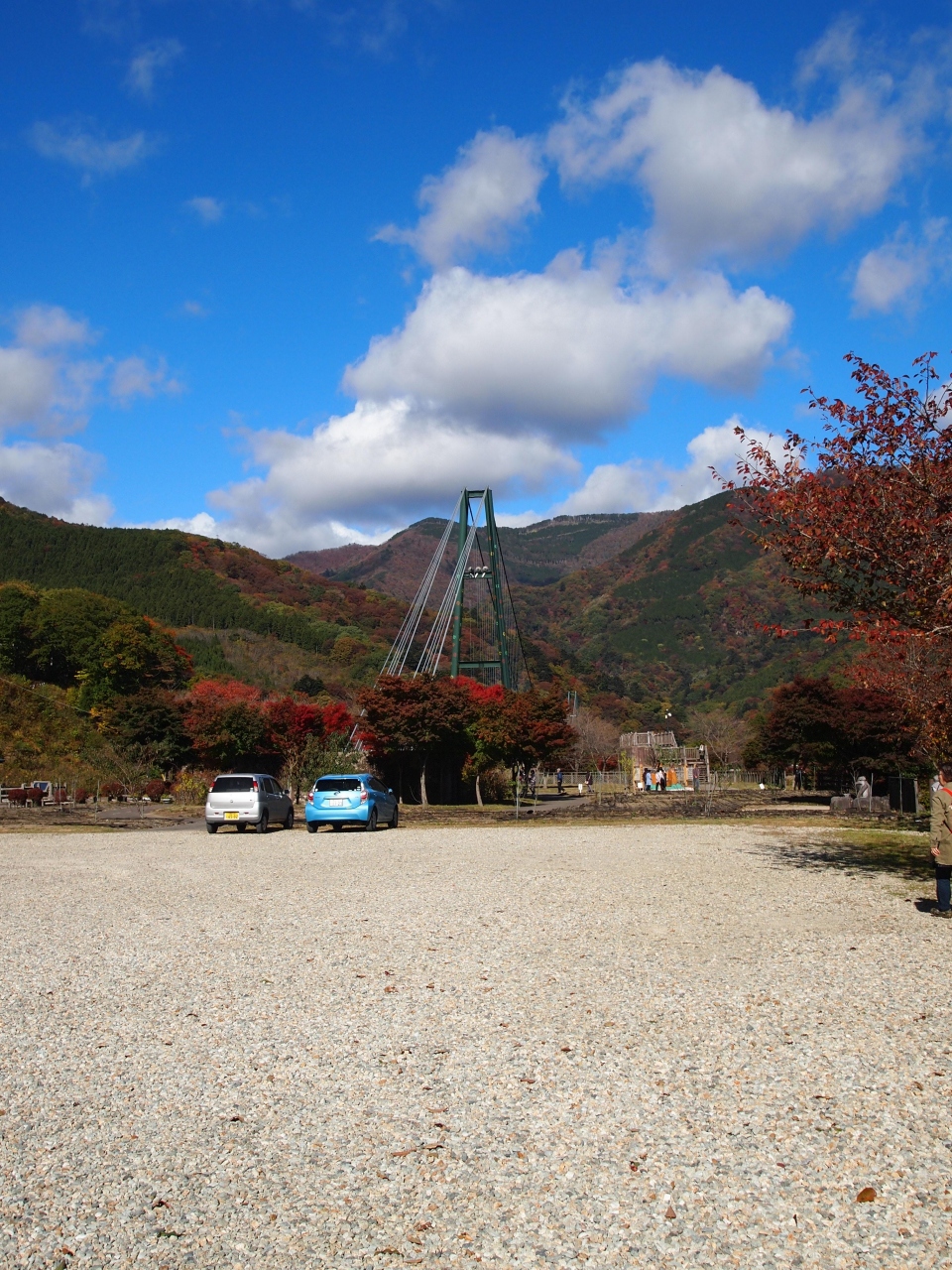 もみじ谷大吊橋は、「無補剛桁歩道吊橋」と言い、ワイヤーロープで橋自体を支える工法で出来てる歩行者専用の吊橋です。