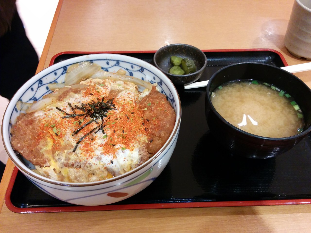 カツ丼を注文しましたが高速道路のパーキングエリアとは、思えないジューシーなかつで