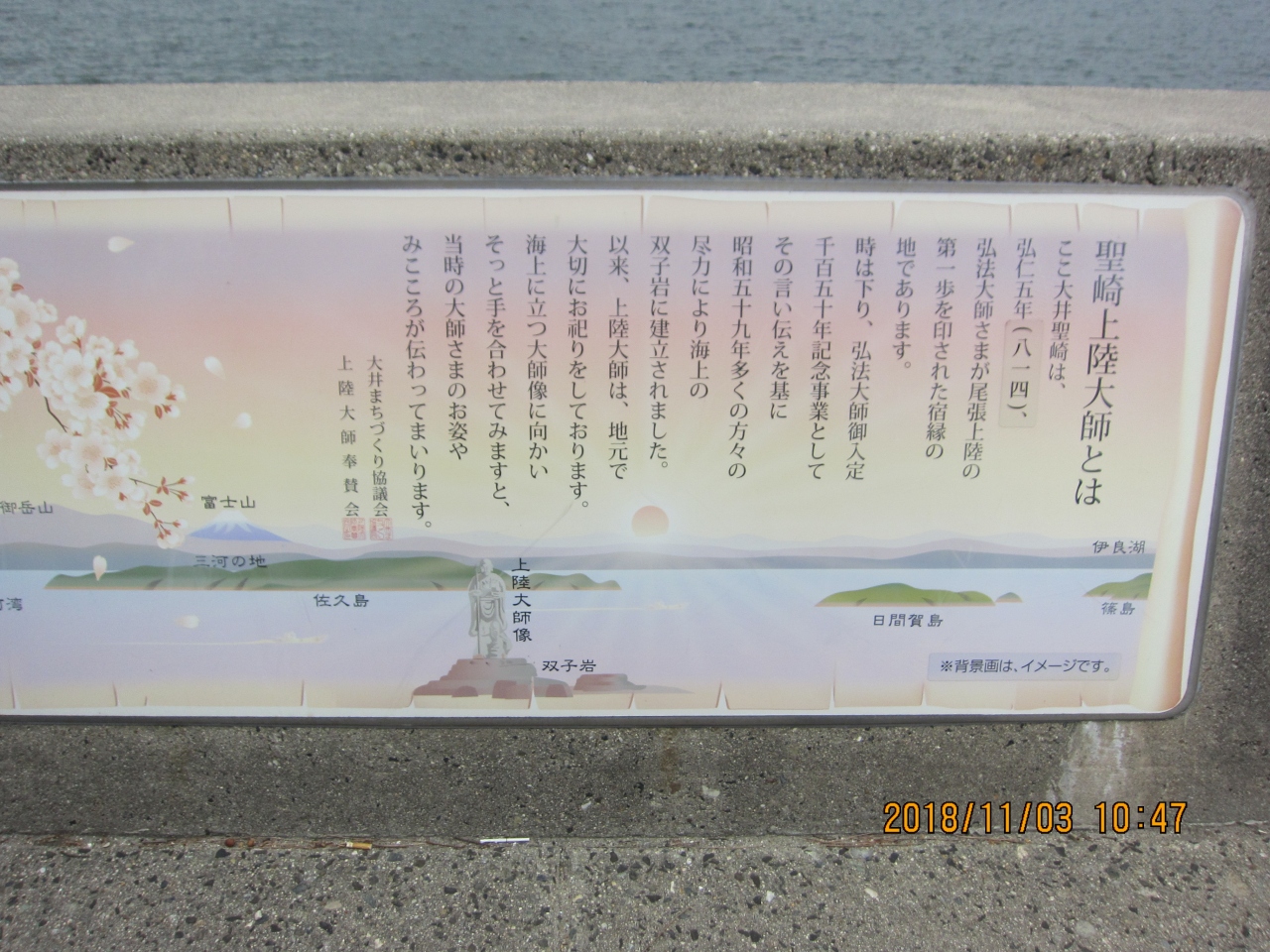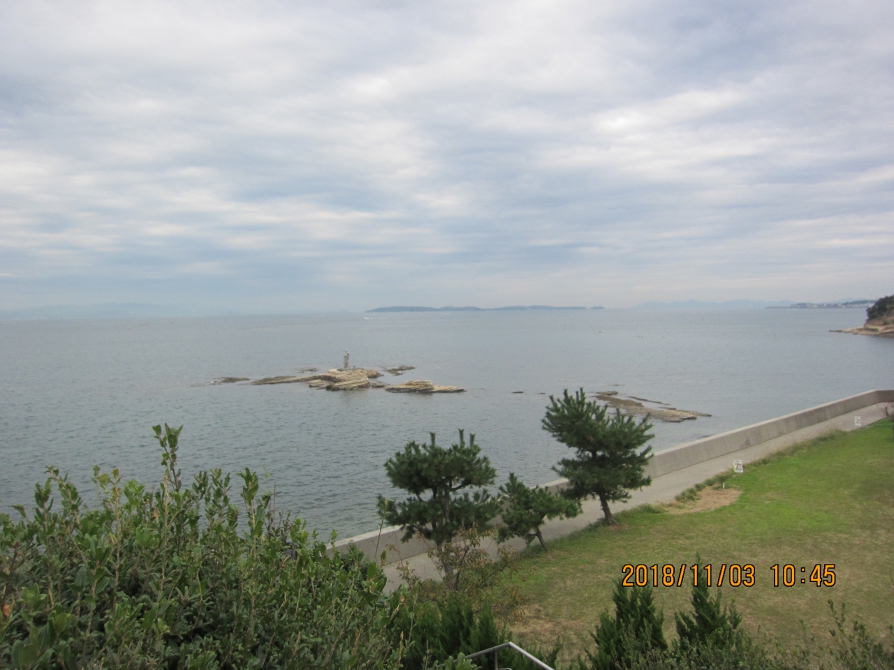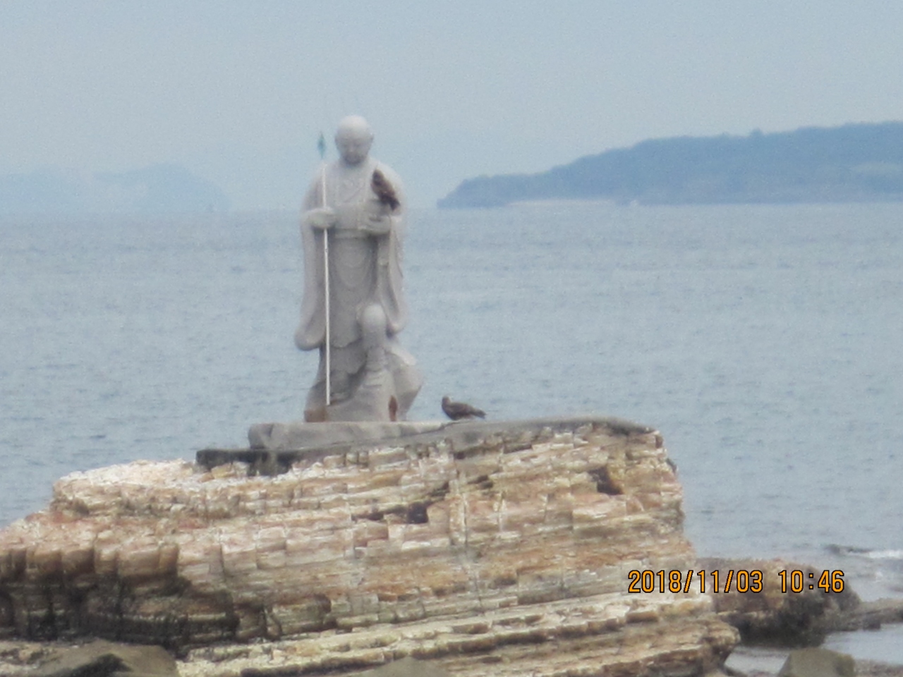 大東和戦争の英霊を祀った聖平和観音、「君が代」にも詠われる「さざれ石」や展望台があります。 「さざれ石」は石灰質角礫岩であり、岐阜県春日村の産物だとは、初めて知りました。 またこの展望台からは、海上の双子岩に建つ「上陸大師」が見られます。 とてものどかな公園でした。