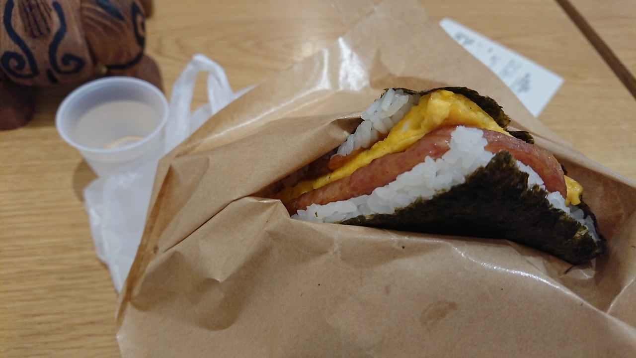 コンビニでもスパムおにぎりは販売されていますが、お店では出来立ての温かいものを頂けるので断然いいと思います。