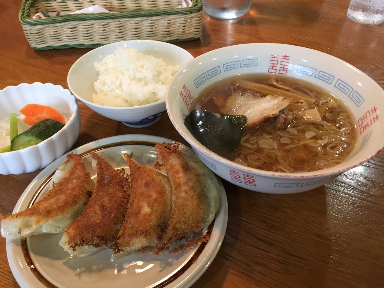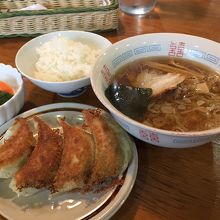 14時過ぎに行ったら、お店のガラス越しに餃子を作っている人の姿が見えました。あまりお腹が空いていないけど、ラーメンも餃子も食べたい!と思い、ミニラーメンセット 1,100円 を注文しました。餃子は火傷しそうなくらいアツアツで、中はジューシーで美味しくいただきました。ラーメンはさっぱり系。ぬか漬けも美味。